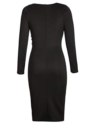 Lrady Women's Deep V Neck Casual Work Bodycon Cocktail Party Pencil Midi Dress