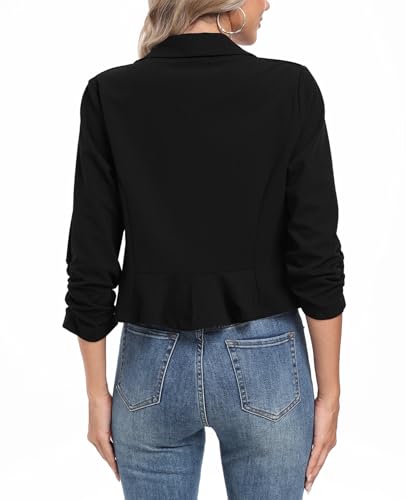 MINTLIMIT Cropped Blazers for Women 3/4 Ruched Sleeve Open Front Cardigan Casual Work Office Blazer Suit Jacket
