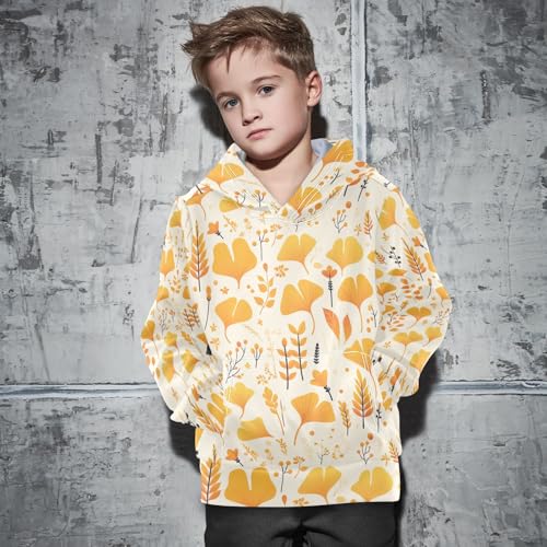 trending ! KLL Ginkgo Leaves Cute Boys Girls Sweatshirt Long Sleeve Hoodie with Kangaroo Pocket