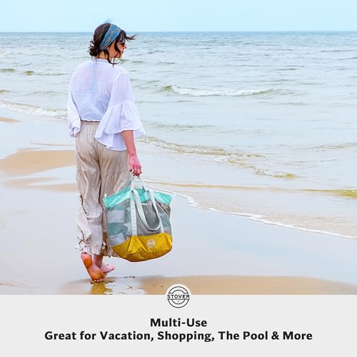 More information about STOVER Large Mesh Beach Bag, Vacation, Pool, Shopping, & Travel Tote - Foldable w/Storage Pockets for Women, Men & Families