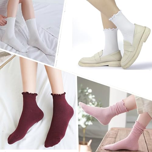 More information about 6 Pairs Ruffle Socks for Women Cute Frilly Ankle Socks Solid Color Casual Dress Sock(3 Pairs Long + 3 Pairs Short)