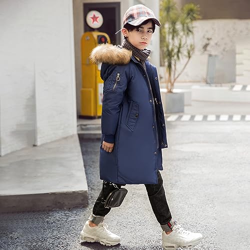 Boys' Mid Length Down Jacket Kids Thermal Winter Hooded Parka Coat Age 3-14 Years