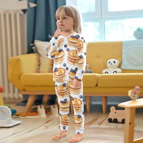 trending ! Pajama Sets Long Sleeve Pancakes with Blueberries smooth Comfy Sleepwear 2 Piece PJS 3-8T