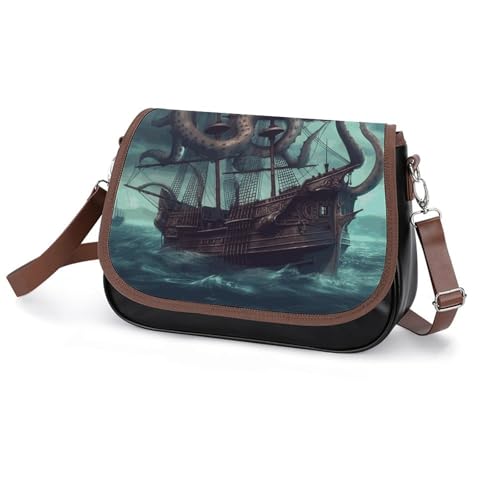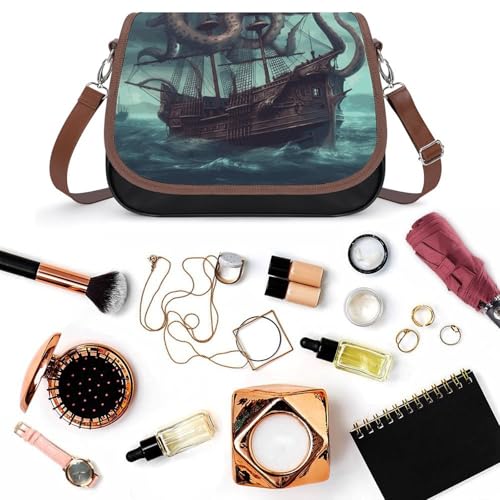 • Fashion: Octopus Ship Tote bag is equipped with detachable leather shoulder strap, can be worn crossbody or single shoulder, a variety of matching styles, fashion changes, to meet your needs for different occasions to make your wear a fresh look