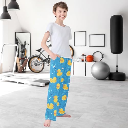 Boy's Pants Yellow Duck Poor Jogger Pants Elastic Waist Long Bottoms Trousers with Pockets 6-14 Years