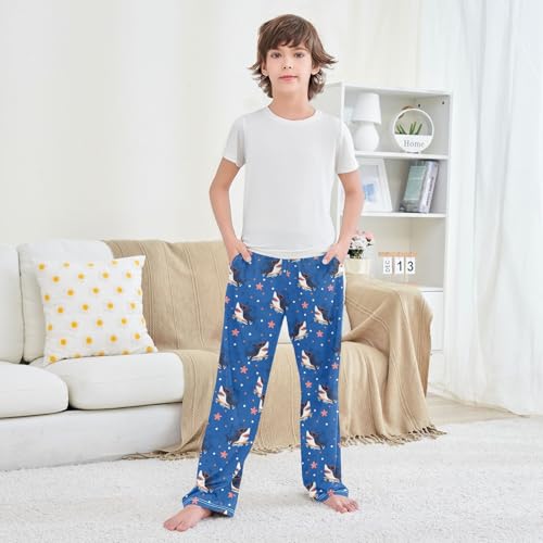 Cool Shark Surfing Starfish Boys Long Pants silky Trousers Elastic Waist Kids Lounge Bottoms with Pockets S-XL