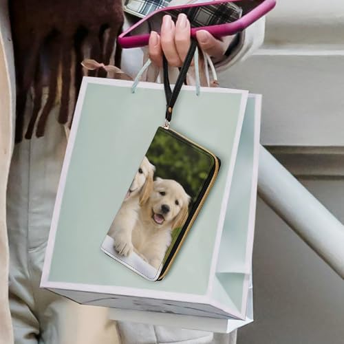 Golden Retriever Puppies Leather Wallet Smooth Zip Around Clutch Wristlet Travel Long supple Purse for Women