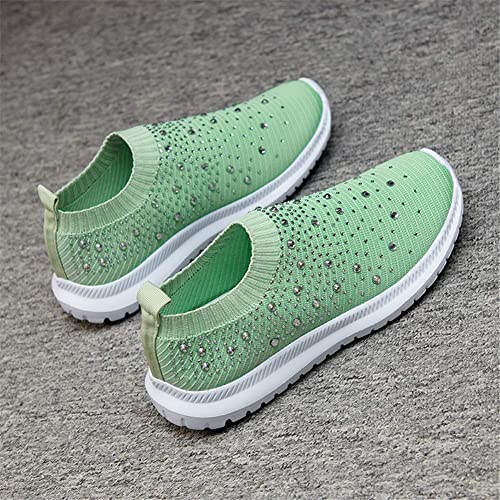 Women's Crystal Breathable Orthopedic Slip on Walking Shoes Sparkly Sneakers, Womens Mesh Orthopedic Walking Shoes Slip Resistant Slip on Sock Sneakers