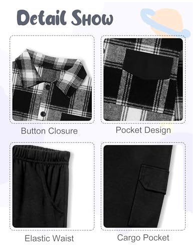 Toddler Boys Clothes Long Sleeve Flannel Plaid Button Shirt +Cargo Pants 2 Pcs Fall Winter Kids Outfits Set for 3-8T