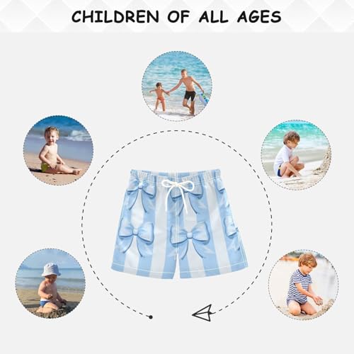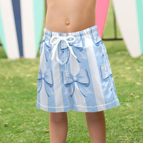 Pigsaly Boys Swim Trunks Blue Bow Striped Blue Watercolor Boys Board Shorts Swimsuit Swimwear Summer Bathing Suit 5T