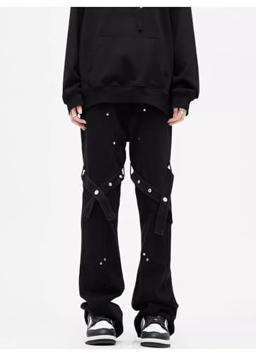 GUOYUXIAO Men's Jeans High-Street Tie-Waist Flared Straight-Leg Denim Pants Casual Workwear Trouser for Men
