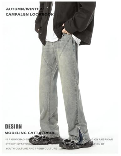 Jeans Pants Trousers Denim Spring and Autumn High Street Men's Design Sense Zipper Micro Pull Loose traditional Long