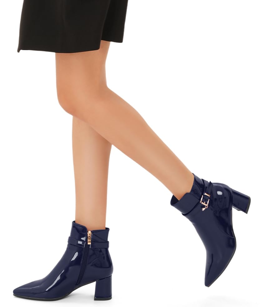 Sole material: RubberShaft circumference: 12 InchesOuter material: Faux LeatherClosure type: ZipAbout Size:The ankle boots with low heel of approximately 2.36 inches.If you are not sure which size to choose, please check our size chart and take an accurate measurement before purchasing.Easy for Walking:Non-slip rubber sole and block heel give you a high degree of comfort and make you feel very relaxed and comfortable while walking.sleek Design:The boots are wrapped with crossed straps and decorated with a rhinestone pendant on the side. The stylish and elegant boots will further exude your charm.And the side zippers make it easy to take on and off.About Material:Shaped with soft pu upper,jersy lining,anti-skid rubber outsole.All seasons are suitable to wear the dress boots with heel.Daily Collocation:The heeled boots can be worn with jeans, coats, knits, sweaters, skirts, dresses etc.These casual and versatile ankle booties are suitable for many occasions including work,dating,walking,nightclub,party and so on.They also can be great gifts for your daughter/wife/mom/friends on Mother's Day/Thanksgiving Day/Christmas/birthday. Perfect for everyday use. superior materials and excellent craftsmanship ensure long-lasting durability.