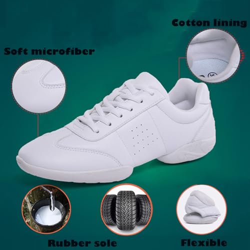 Boys Girls White Cheer Shoes Lace-up School Competition Chearleading Dancing Walking Yoga Sports Shoe Sneakers