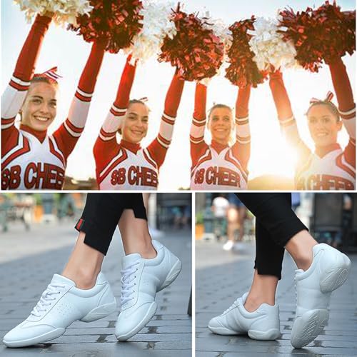 Sole material: RubberOuter material: MicrofiberClosure type: Lace-UpWater resistance level: WaterproofUltra lightweight: we've improved all material so that the shoes light as a leather ,low profile&enduring design is suitable for girls in all positions, especially for flyers who need lightweight cheer shoes to do stunts ,tumbling and jumps.Non-slip outsole: The rubber sole provides excellent support and grip on the ground, allowing you to move quickly and easily while creating a sense of security.Premium microfiber leather, mesh tongue and small holes on the upper make the shoes very durable and breathable, perfect for all kinds of training and competitions,cheer games,an affordable and excellent equipment for cheer sports.The padded collar protects athletes' ankles and offers comfort,the bouncy insole reduces pressure during stunts,the lace-up closure for a better fit.The fashionable and casual look is suitable for many occasions, such as cheerleading, baby soccer, dancing, work, fitness, dance, hobbies, tennis, volleyball, running, shopping, walking, outdoor trips, art exams... Perfect for everyday use. superior materials and excellent craftsmanship ensure long-lasting durability.
