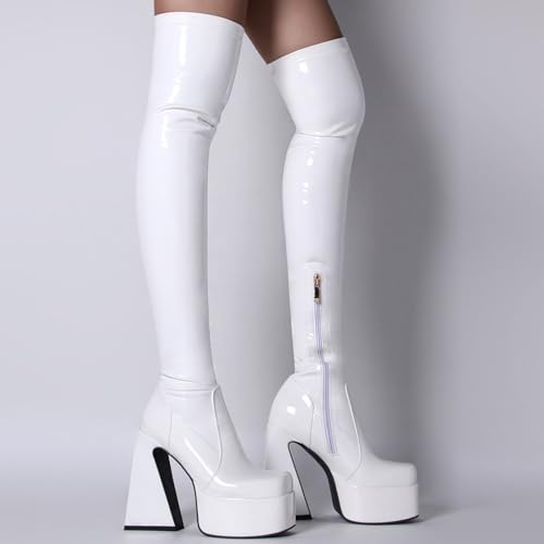 Why Choose Roimaash Women's Thigh High Heels Latex Boots Over-the-knee Boots High Knee Boots Platform Stretch?