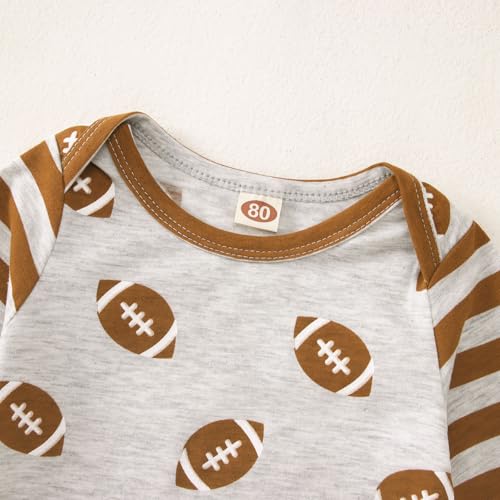 Fabric type: Cotton BlendCare instructions: Machine WashOrigin: Imported🏈Material: The newborn baby football jumpsuit is made of cotton blend, skin-friendly fabric, which is very soft and snug for your baby’s delicate skin. Baby boy girl football romper, breathable and lightweight, suitable for spring, fall, and winter.🏈Design: Newborn football long sleeve jumpsuit, baby game day outfit, football one piece clothes, designed with cute football graphic print, stripe long sleeve, round neck, snap closure for changing diaper. Cute baby football long sleeve onesie paired with a hat, football game baby outfit, great as a baby's first football season gift.🏈Advice Age: Infant long sleeve football romper, football season baby outfit, fit for 0-18months newborn unisex baby. Football season jumpsuit for newborn 0-3 months, 3-6 months baby football graphic romper, 6-9 months baby rugby graphic jumpsuit, 9-12 months football sunday baby playsuit, 12-18 months baby football outfit. Best gift to a new dad or mom who is a football lover!🏈Occasions: Baby boy football game day outfit, newborn rugby outfit, is great for football season, game day, casual daily wear, baby shower gift, birthday, playwear, family gathering, Sunday Funday, photo shoot. Infant long sleeve football one piece set, let your baby also participate in the celebration of the football match!🏈Package Included: 1x Long sleeve football romper jumpsuit for baby boys girls +1x Hat. Please choose the right size according to the size chart. Machine wash gently in normal temperature water, don't bleach. Perfect for everyday use. first-class materials and excellent craftsmanship ensure long-lasting durability.