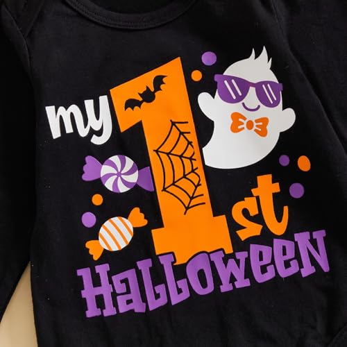 trending ! My 1st Halloween Baby Boy Outfit Letter Print Long Sleeve Romper Pumpkin Ghost Spider Long Pants Hat 3Pcs Set