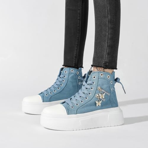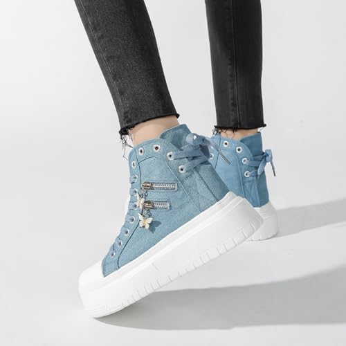More information about Womens High Top Sneakers Platform Metal Zipper Canvas Shoes Casual Lace up Sneakers