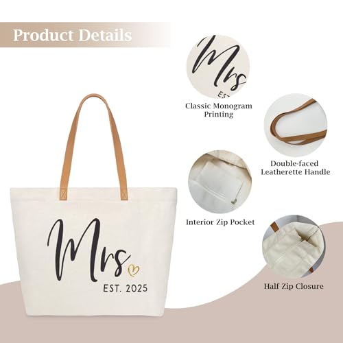 trending ! ELEGANTPARK Mrs Bag Mrs Gifts 2025 Bride Gifts Bride Tote Bag Wedding Bridal Shower Bachelorette Party Honeymoon Large Travel Canvas Totes with Zipper