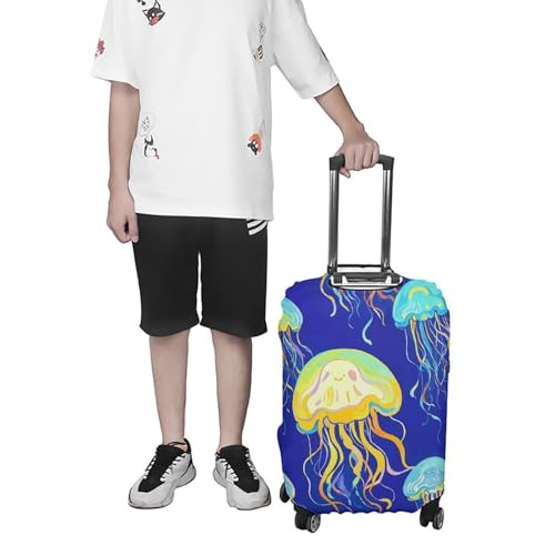 【 Jellyfish Luggage Cover】Fit quickly and easily in seconds. Durable and washable, 4 sizes available to fit almost any luggage. S: fit 19-21 inch luggage, M: fit 22-24 inch luggage, L: fit 26-28 inch luggage, XL: fit 30-32 inch luggage.【Easy Zipper Access & Installation】Features convenient zipper closures on the sides for side handles and a large top opening for the telescopic handle. Double-stitched all over, full of stretch and high elasticity, ensure your suitcase stays shut during the trip.【Superior Scratch & Dust Protection】Crafted from thick, durable material to shield your suitcase against scratches, dust, dirt, and minor impacts during transit and storage, keeping it looking new longer.【Washable & Reusable Suitcase Cover】Made from high-quality, stretchable fabric that's easy to clean. Simply machine wash for repeated use, offering a sustainable and economical travel accessory.【sleek Luggage Protector】Available in various vibrant colors and patterns. Easily identify your bag at baggage claim while adding a personal touch and safeguarding your luggage from wear and tear. Perfect for everyday use. superior materials and excellent craftsmanship ensure long-lasting durability.