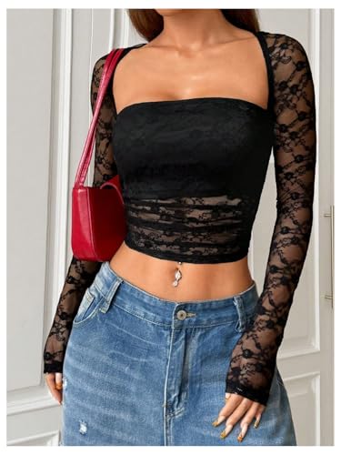 Why Choose Women's Lace Sheer Mesh Ruched T Shirt Square Neck Long Sleeve Slim Fit Crop Tops?