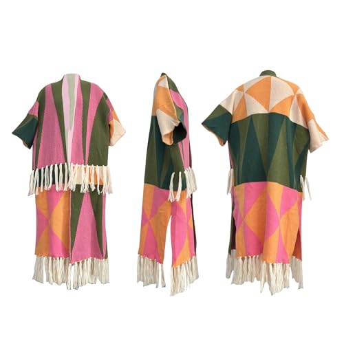 • 【Features】: Women sweaters for fall and winter. Cardigan sweaters for women. Fall cardigans for women 2023. Color Block, Open Front, Knitted, Fringe, Tassel,Printed, 3/4 Sleeve Cardigan/Outerwear.