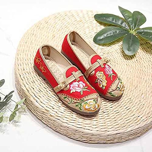 Why Choose Chinese Beijing Embroidered Women Handmade Linen Canvas Embroidered Ladies Casual Knitted Espadrilles Flat Shoes (Color : Red, Size : Code 38) (Blue Code 40)?