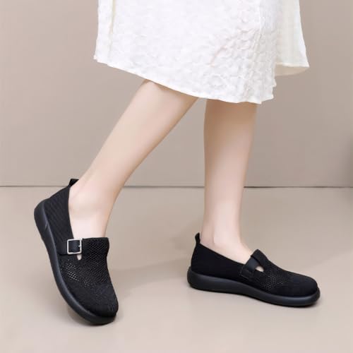 Mary Jane Flats Women with Adjustable Strap Wide Round Toe Casual Ballet Flats Shoes Dressy cushy for Office Work Walking Business