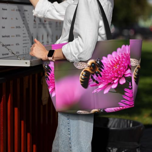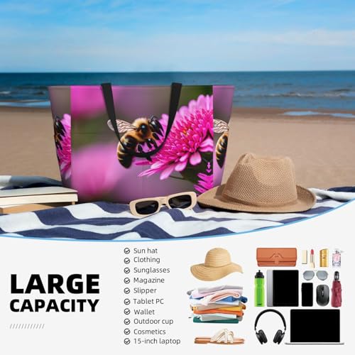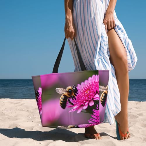trending ! Bee Flying 1 Large Beach Tote Bag Women Beach Tote Bag For Pool Gym Grocery Travel With Multiple Pocket
