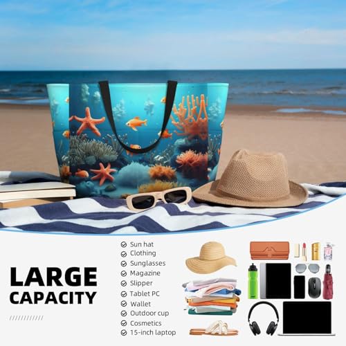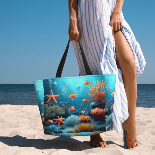 trending ! Spacious and long-lasting Coral Fish underwater Printed Beach Travel Bag for Beach Trips, Grocery shopping, Swimming Pools