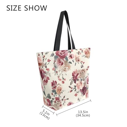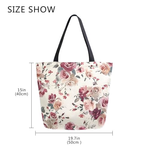 Why Choose Extra Large Shoulder Tote Bag for Beach Travel Weekender Gym Vintage Roses Pattern Pink Beige Reusable Grocery Canvas Shopping Bag?