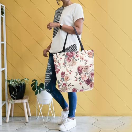 This Extra Large Shoulder Tote Bag for Beach Travel Weekender Gym Vintage Roses Pattern Pink Beige Reusable Grocery Canvas Shopping Bag combines elegant design with practical functionality. Every detail has been carefully considered to ensure you get the top possible experience. The top-grade construction means this product will serve you well for years to come.
