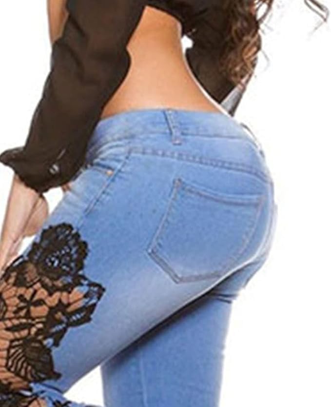 More information about Women's Sexy Hollow Out High Waist Jeans Lace Skinny Floral Appliques Pencil Jeans Stretch Slim Hole Fitness Denim