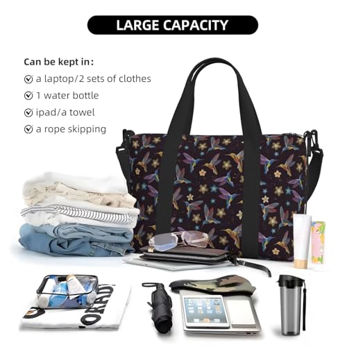 LARGE SIZE : Flower Hummingbirds Embroidery print Hand Travel Bag, Measuring 16.1 inches / 41 cm L x 5.9 inches / 15 cm W x 11.4 inches / 29 cm H, this bag is large enough to hold the essentials for a 3-5 day tripFabric : This Hand Travel Bag Is Made Of Oxford Fabric, Which Is Lightweight, Sturdy And Keep Your Belongings DryMulti-Purpose : This Hand Travel Bag Is Fit For Travel, Weekend, Overnight Stays, Sports Activities, Tennis, Fishing And Many Outdoor Activities. And Also Be Used As Sports And Fitness Bags, Travel Luggage Bags, Travel Bags, Handbags, Weekend Bags, Personal Belongings BagsProduct Performance : This Travel Bag Is Big Enough To Make It Easy To Store Your Clothes, Cosmetics, Shoes, Laptops, Ipads, Headphones, U-Shaped Pillows And Other Items. It Is Fit For Air Travel Handbags, We Can Carry Them With Us And Place Them Under Your Seat Or On Luggage Rack According To Its SizeAccessory Structure : 1 Main Pocket, Double Zipper Opening And Closing, 2 Patch Pockets And 1 Zipper Pocket Inside, Equipped With An Adjustable Shoulder Strap, Adjustable Range Between 70-125 Cm, Its Hand Strap Length Is About 60 Cm. There Are Reinforced Webbing And Buckle Connection On Both Sides superb for everyday use. superior materials and excellent craftsmanship ensure long-lasting durability.
