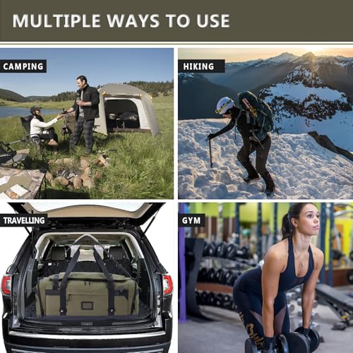 • Military-Grade Foldable Duffle Bag – Designed for durability, this extra large duffle bag for travel meets tough demands. The mens duffle bag is lightweight (M: 3 lbs, L: 4 lbs) yet spacious, ideal for sports, camping, or as a military duffle bag