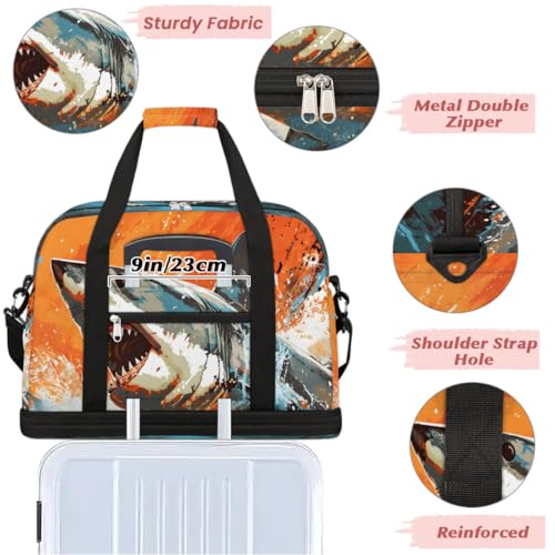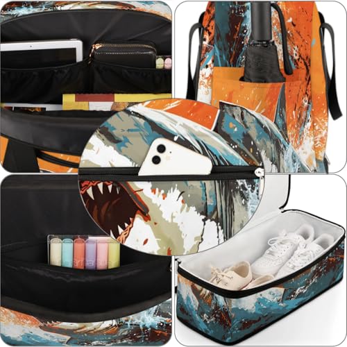 More information about Travel Duffel Bags Ocean Shark Foldable Weekender Bags for Women with Shoes Compartment Waterproof & Tear Resistant Carry on Overnight Luggage Duffel Bag Shoulder Sports Tote Bag,B-993