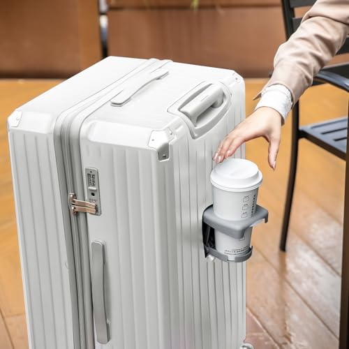 Romswi Suitcase Set with TSA Lock Cup Holder, Hardside Spinner Suitcase with Duffel Bag, Lightweight sturdy PC+ABS White 5 PCS(20/24/28inch)