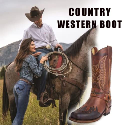 Western Boots for Men Cowboy Boots Lightweight sturdy Round Toe present-day Boots Fashion Embroidered Hand Stitching Riding Cowgirl Boots Anti Slip Mid-Calf Wide Calf Pull On Boot Traditional Country Boot