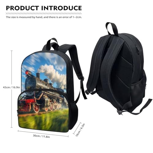 3 Pcs Backpack for School, Kids Backpack for Girls Train and Cloud Print with Lunch Box Pencil Case Set for Teen Girls Elementary Primary Middle High College