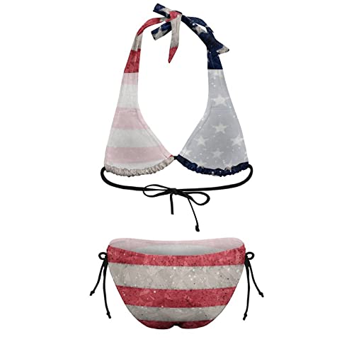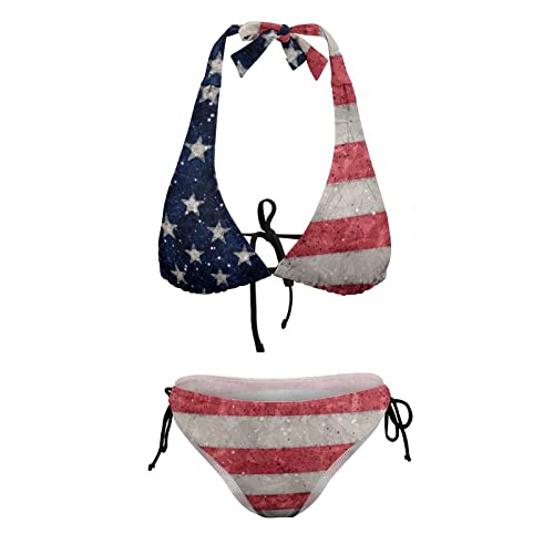 Womens American Flag Bikini Swimsuit Sexy String Halter 2 Piece Triangle Bathing Suits