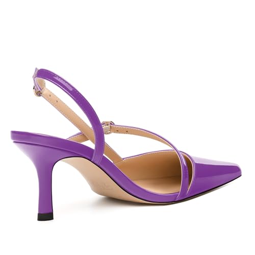 trending ! Women's Pumps, Pointed Toe Mid Heels, Fashion Buckle Slingback Pump, Solid Patent High Heel Shoes for Women