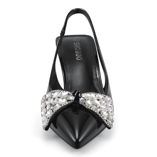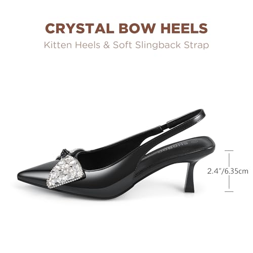 Women's Slingback Kitten Heels with Bow 2.4-Inch Low Heels Closed Pointed Toe Pump Dress Shoes