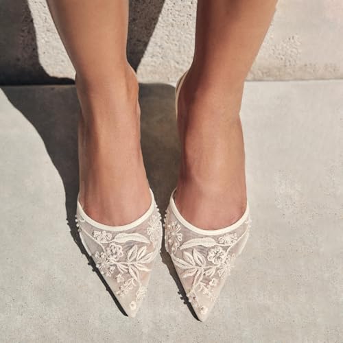 Women's Embroidered Mesh Slingback Pumps with Pointed Toe & Thin Heels - Elastic Strap Dress Shoes for Women flawless for Parties & Formal Events for Women