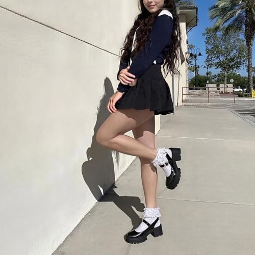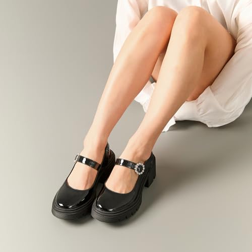 CouieCuies Black Mary Jane Shoes Women Heels Formal Dress Shoes Chunky Heel Round Toe Platform Pumps Cute Casual Pumps