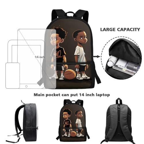 ZOUTAIRONG American Boy Backpack 13 Years Old Black Boys Bookbag with Bottle Holder African Book Bag for 3rd 4Th Grade Afro Kids School Bag for Boys Age 8-10 Back to School