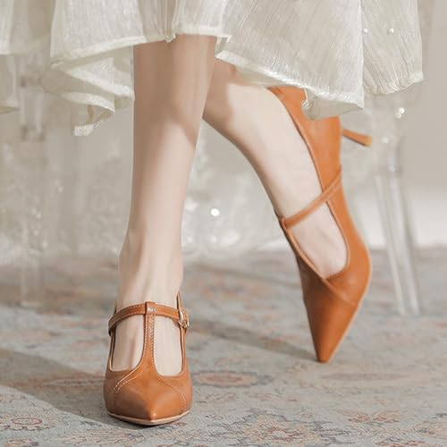 trending ! Women's T-Strap Pointed Kitten Heel Mary Janes Pointed Toe Comfort Adjustable Buckle Business Party Stiletto Heel Dress Pumps