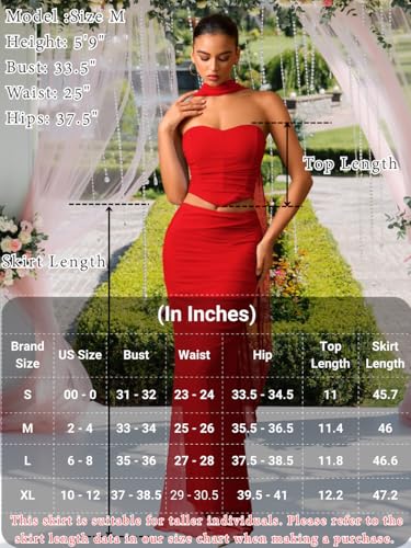 • Details: This is a floor-length skirt set. Our model is 5'9" with measurements of 33.5" bust, 25" waist, and 37.5" hips.