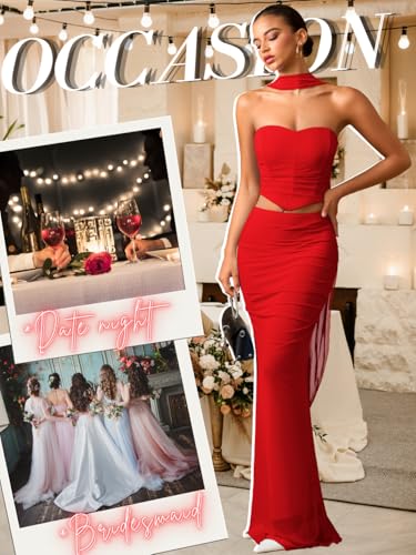More information about Mesh Floor-Length Skirt-Set, Corset Tube-Top with Scarf, Semi-Formal Wedding-Guest, Strapless Bodycon Ruched Long