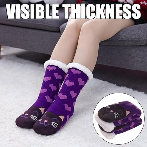 POEATEZO Womens Slipper Socks supple cozy Fluffy Winter Fleece Lined Sherpa Socks